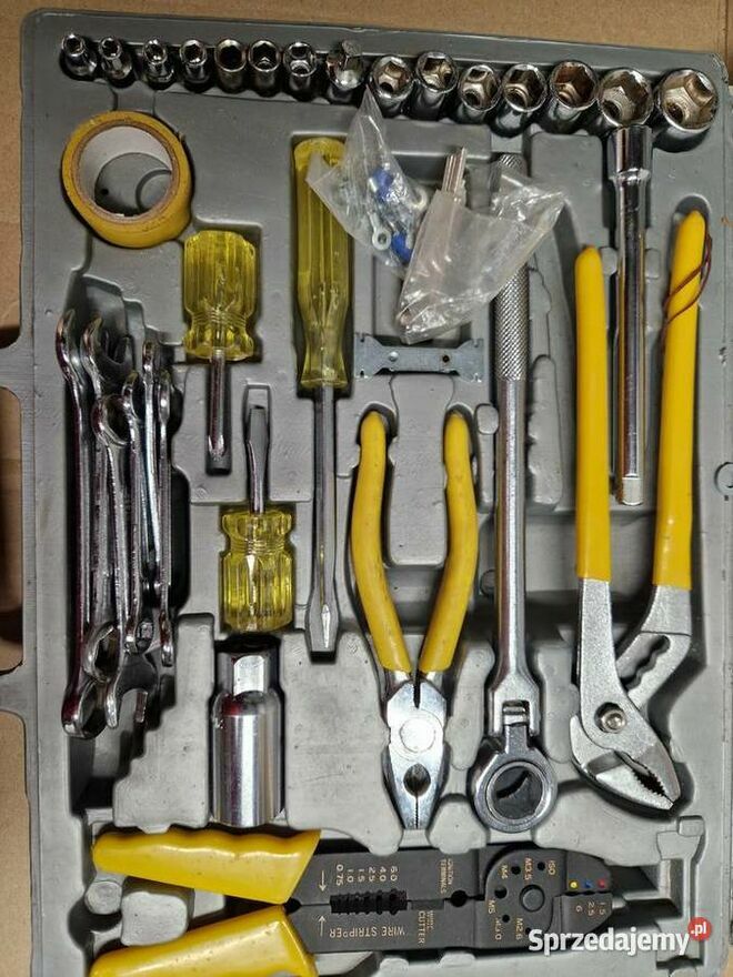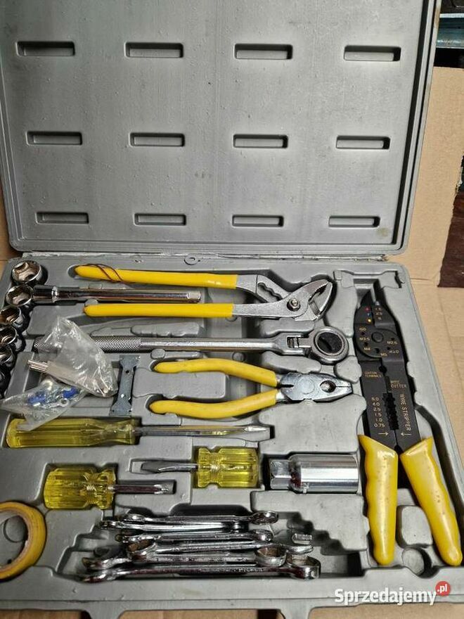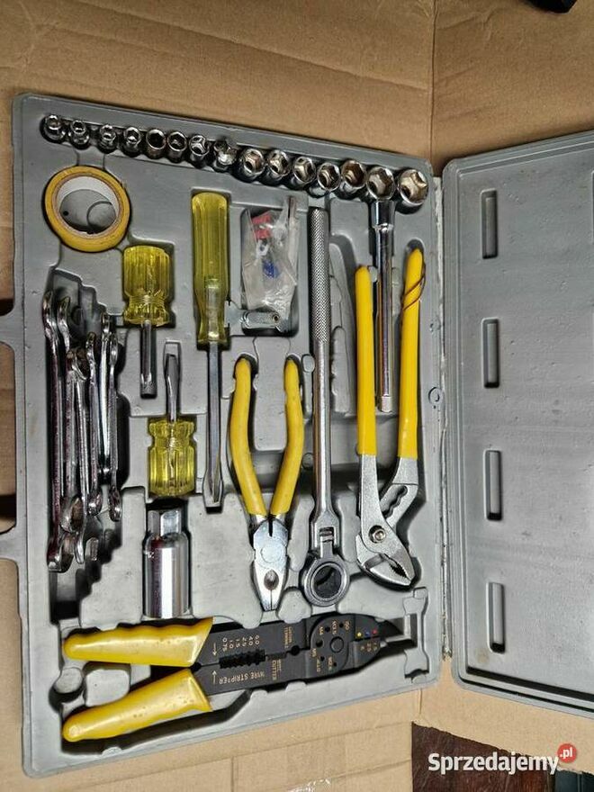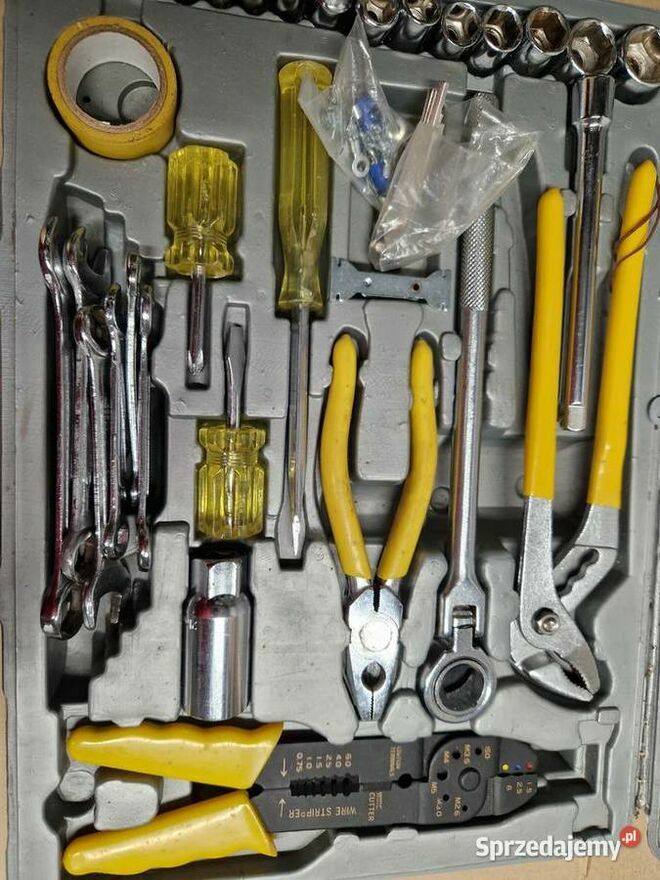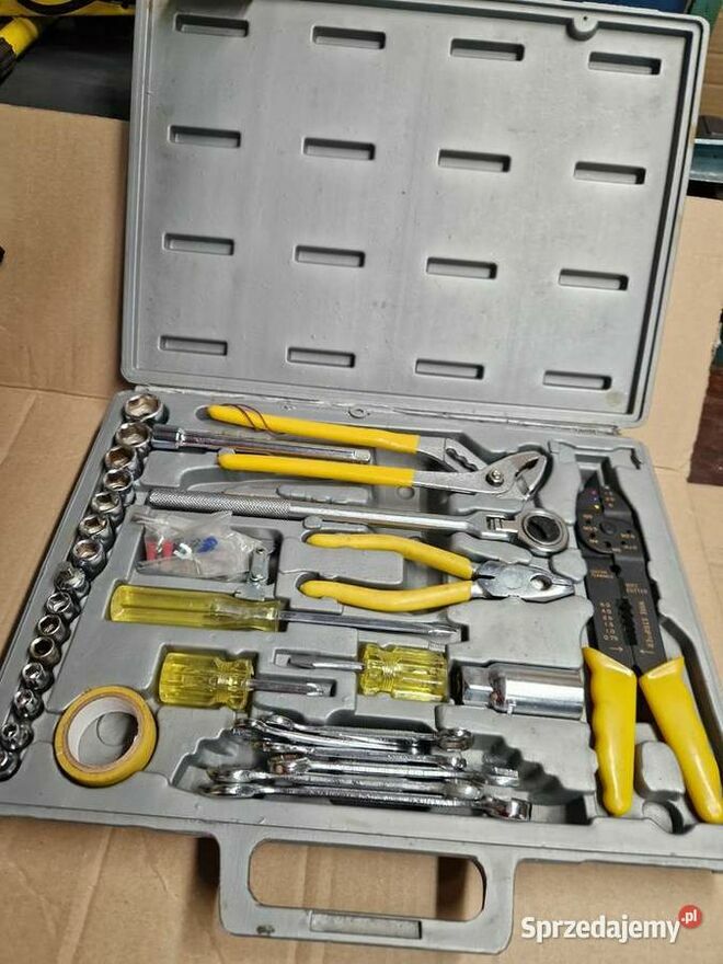 Witam Sprzedam stary zestaw narzędzi Wygląd taki jak widać na zdjęciach uszkodzona grzechotka i uszkodzona skrzynka Zobacz pozostałe moje ogłoszeniaxxx
